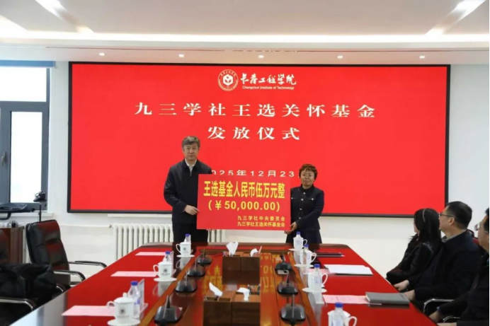 12月23日,九三学社王选关怀基金发放仪式在长春工程学院举行。九三学社吉林省委员会专职副主委李铭出席仪式并讲话,长春工程学院党委副书记宋国玉、九三学社中央委员、长春工程学院副校长尹志刚、九三学社长春市委员会专职副主委金鑫出席仪式。
